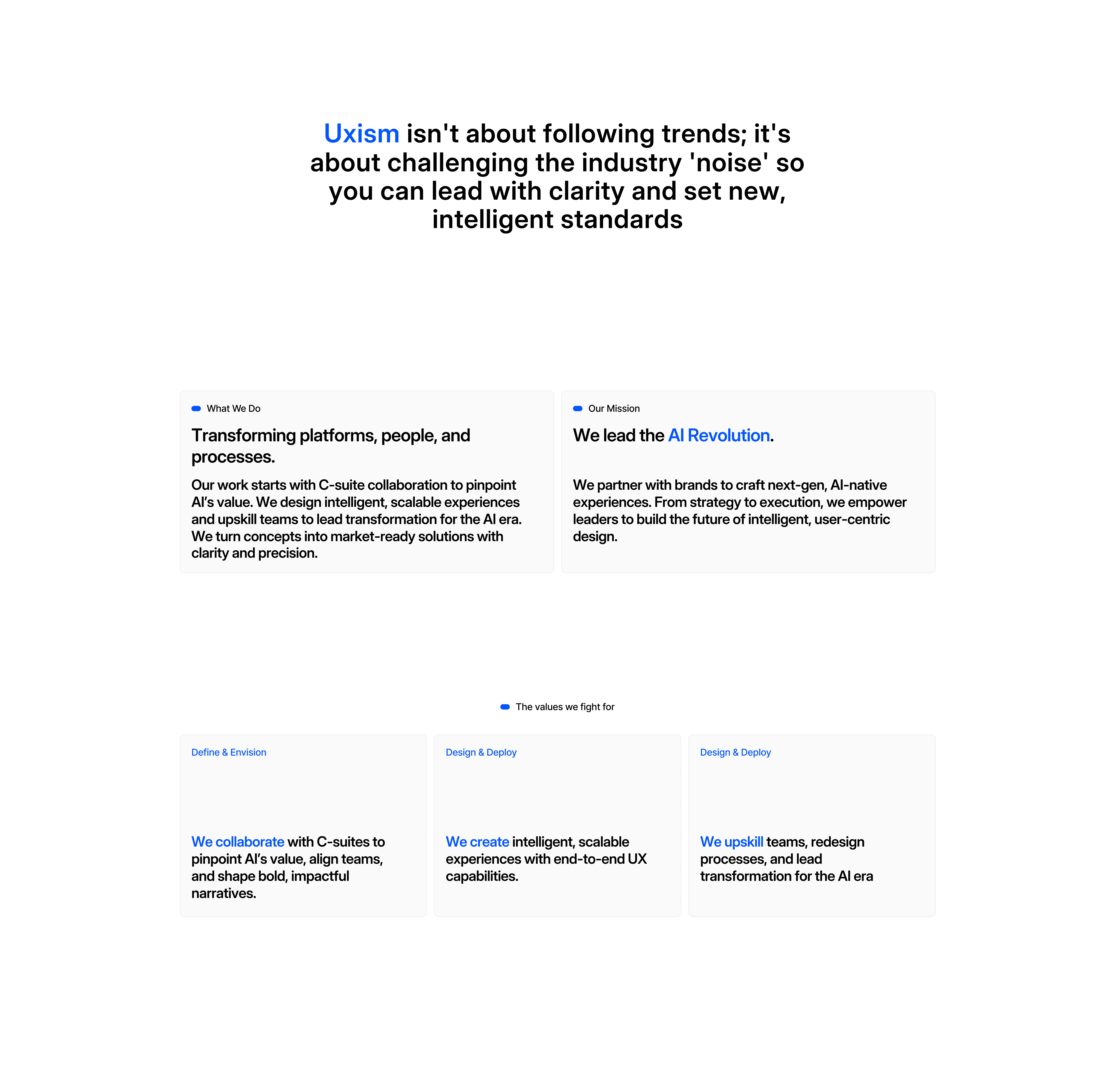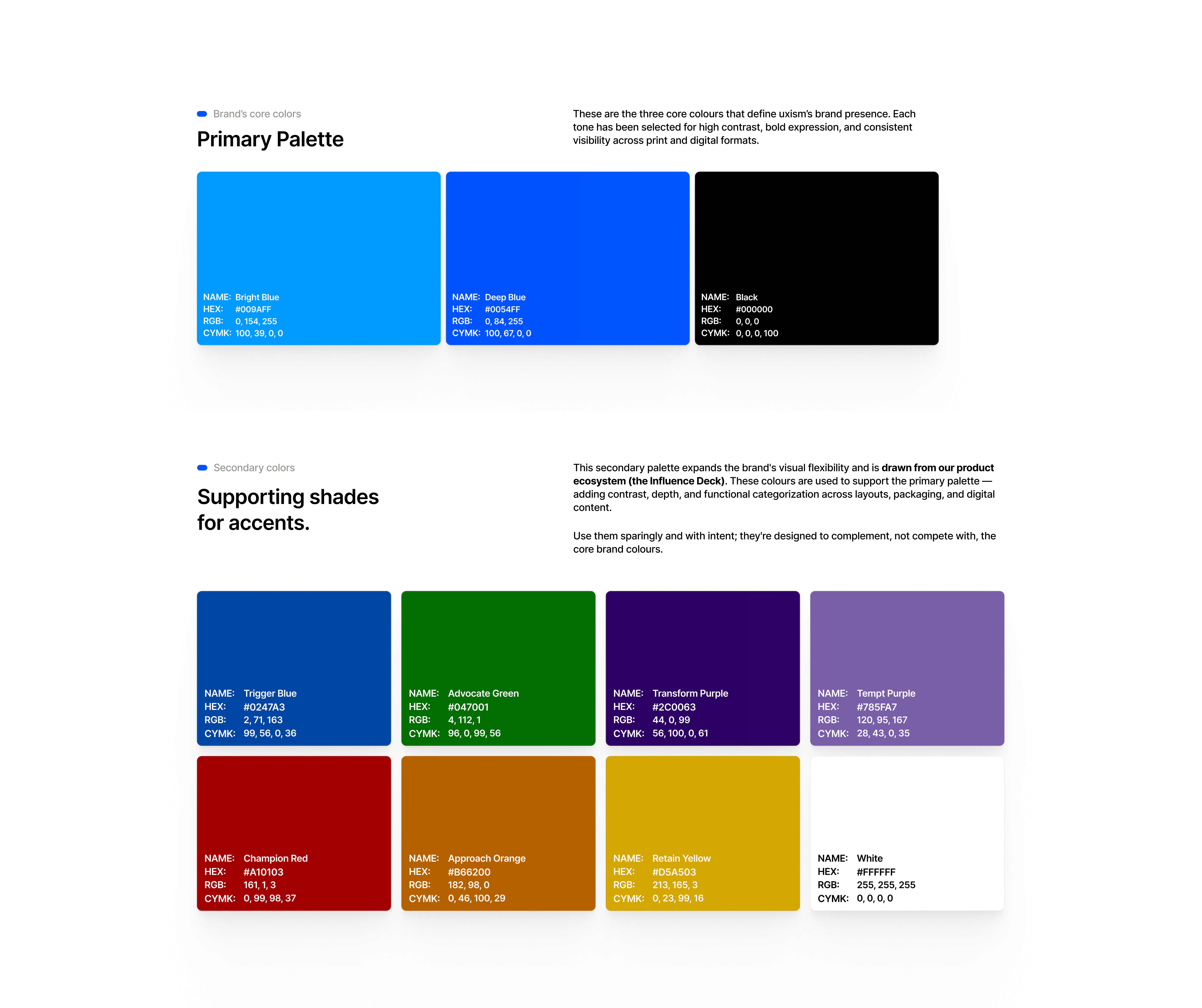 Uxism was an emerging AI-driven UX consultancy that needed a powerful, authoritative brand identity to establish it as a premier industry leader. The project goal was to build credibility and create a cohesive system for its unique product ecosystem (workbooks, cards) and workshops."