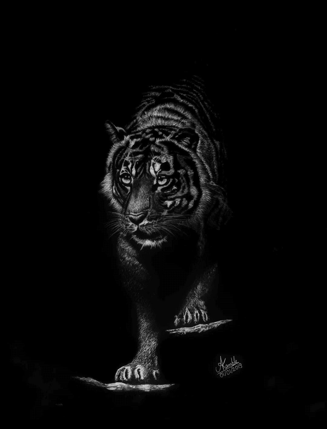 My illustration work focuses on the challenging technique of negative art. I begin with traditional black charcoal on white paper to create photorealistic portraits, which are then digitally inverted to produce a striking and unconventional aesthetic.